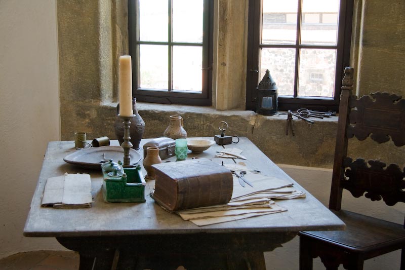 Gleich gegenüber der Kasse gibt es einige alte Wagen, Kanonen und Foltergeräte zu besichtigen. Dann geht es weiter den steilen Berg hinauf zur Burg. Die Burghöfe selbst sind auch für Kinderwagen geeignet (aber dann ist Schluss). Hier stehen auch noch einige alte Kanonen und der Brunnen. Da inzwischen alle vier Türme besichtigt werden können, geht es viele Wendeltreppen rauf und runter. Jeder Turm ist anders und sehr abwechslungsreich. Vom Kerker bis zum Coselturm, eigentlich ist für jedes Interesse etwas dabei. In einem Seitenteil des Burghofes gibt es eine kleine Gartenwirtschaft. Eigentlich sind wir sonst eher sparsam, aber hier sind wir schwach geworden und haben es nicht bereut. Zu guter Letzt darf natürlich auch ein Besuch beim Burggespenst nicht fehlen…
