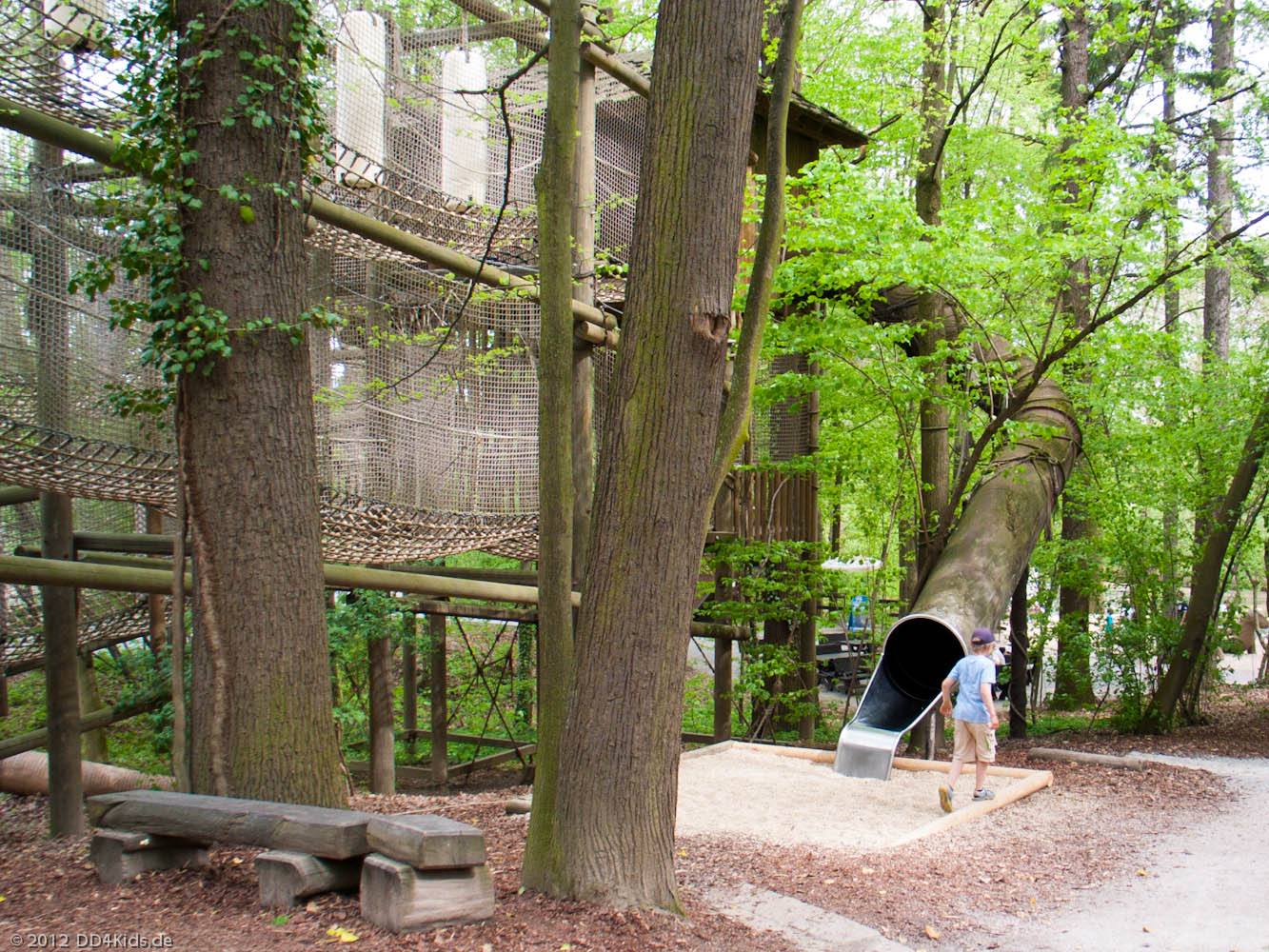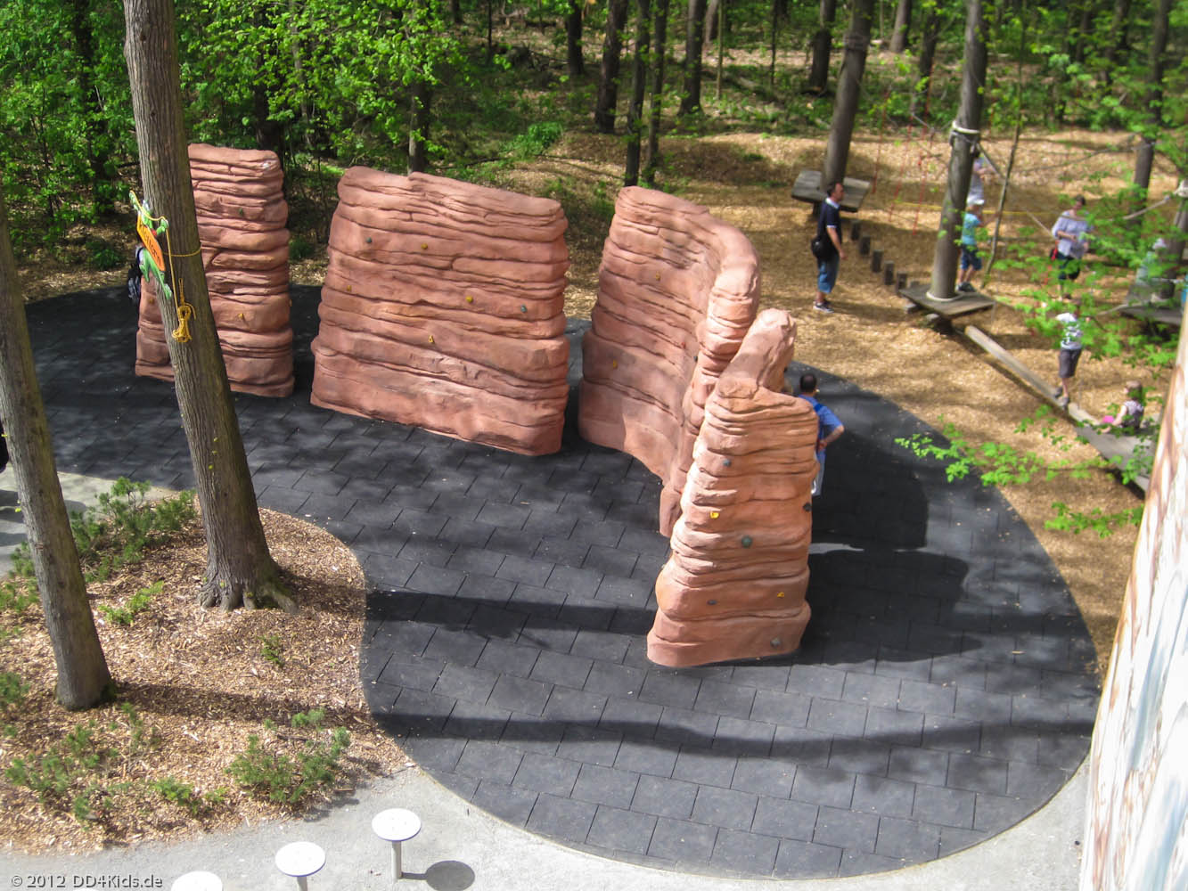 Im Park sind viele Kletter- und Balanciergeräte verteilt. Das Highlight ist sicher die riesige Netzkletterburg, aber auch der Niedrigseilgarten, die Kletterfelsen zum Bouldern und die 8m hohe Kletterwand mit Seilsicherung bieten Kletterspaß. Außerdem gibt es mehrere Rohrrutschen, Schaukeln, ein Trampolin, Wipptiere und vieles mehr.