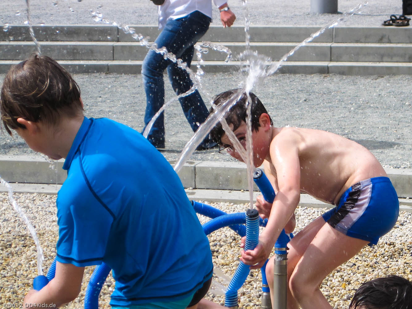 Der Planetenspielplatz ist ansonsten ein riesiger Wasserspielplatz und besonders bei gutem Wetter sehr zu empfehlen. Außerdem gibt es noch eine tolle Matschstation, die bei unserem Besuch leider etwas an Wassermangel litt, aber trotzdem heftigst bespielt wurde.