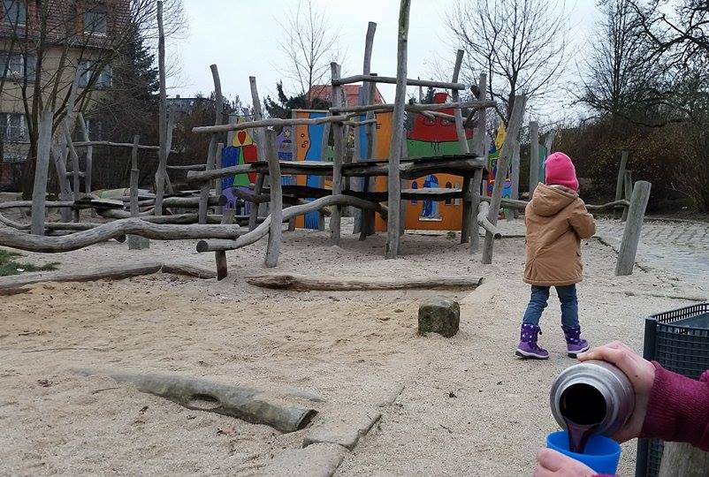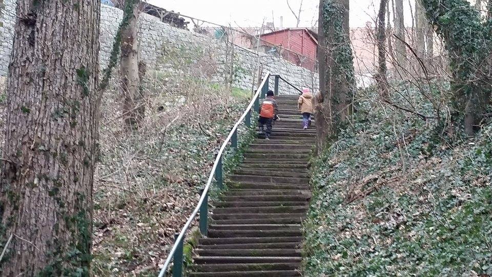 Dann wendet Ihr euch rechts und läuft über die Treppen den Coselweg hoch Richtung Wald. (Der Weg ist hier nicht kinderwagentauglich.) Oben angekommen geht es weiter dann Richtung Achtbeeteweg zum Spielplatz Kleincoschütz.