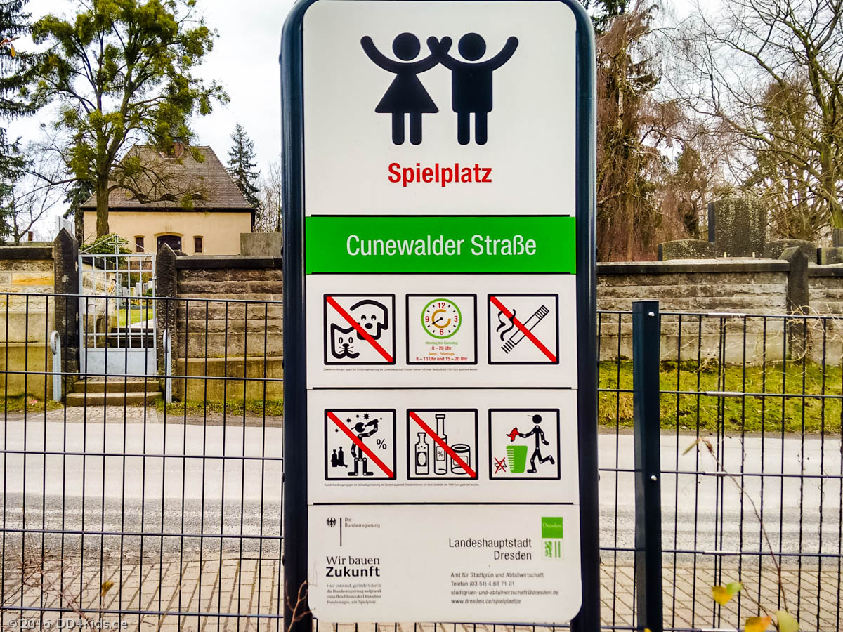 Der Spielplatz auf der Cunewalder Straße wurde im Juni 2011 neu eröffnet. Er ist in der Nähe des Gymnasium Bühlau auf einem leichten Hanggrundstück gelegen und vor allem für kleinere Kinder geeignet. Das Gelände ist leicht hügelig angelegt, hat einige gepflasterte Wege und viel Wiese. Auf einer Seite wurde sogar noch die alte Streuobstwiese erhalten.