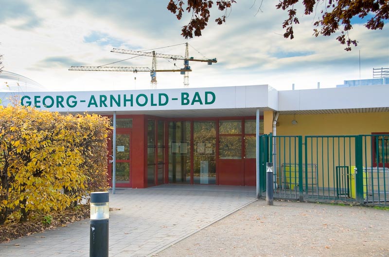 Zwischen Hygienemuseum und Dynamo-Stadion befindet sich das Georg-Arnhold-Bad. (und nicht Georg-Arnold-Bad – Danke für den Hinweis!) Es ist als zentral gelegenes Hallenschwimmbad mit angeschlossenem Freibad und großer Liegewiese eines der wichtigsten Schwimmbäder mitten in Dresden.