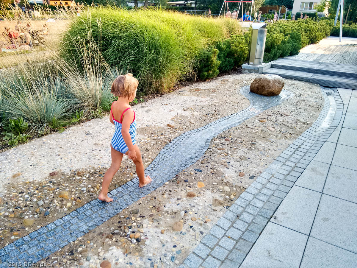 Über kühles Quellwasser gespeist wird eine Kneippanlage, wo man Wassertreten kann. Insgesamt verteilen sich die Besucher ganz gut, sodass man hier auch bei starken Andrang genug Lagerfläche findet.
